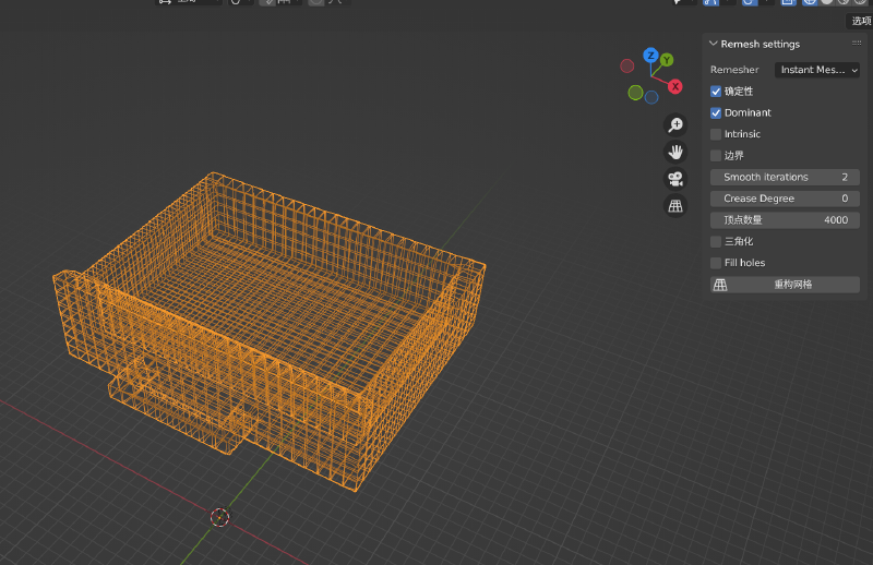 之后,导入并选中我们的 mesh 模型,点击重构网格,即可生成由四边形面片构成的 mesh。